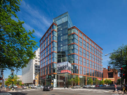 2100 L Street is a 10-story, 190,000-square-foot, trophy project located in the Central Business District. The modern property boasts floor-to-ceiling glass and a grand, two-story lobby. Its landscaped, rooftop terrace features dramatic views of the Washington skyline, an indoor lounge room featuring a multi-use bar and coffee station, and a penthouse conference center. Other building amenities include an art gallery with private outdoor terraces, a spa-quality fitness facility, a bicycle storage room with a bike maintenance station, and an outdoor pocket park. The first floor also features 8,000 square feet of retail space. The project's premier location provides easy access to neighborhood amenities and three Metro stations.