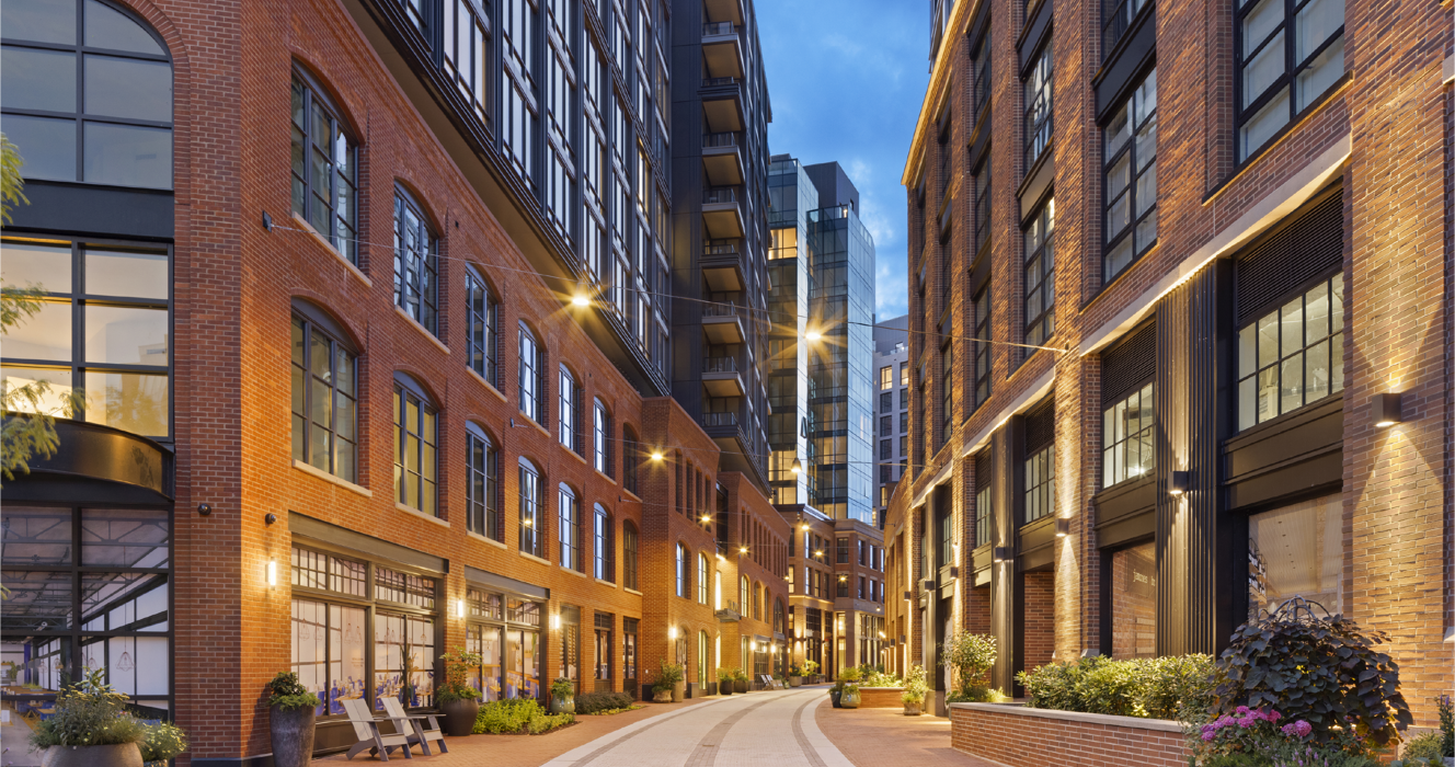 The Stacks is a transformative 6+ acre development that encompasses two city blocks bounded by V Street, T Street, First and Second Streets SW. The two-million-square-foot, mixed-use development redefines residential living on DC's Southwest Waterfront. The Stacks creates a neighborhood with lively yet approachable street life that feels altogether different. Inspired by some of the District's most storied neighborhoods, it stands out along the waterfront as a more livable, pleasant, and walkable community tailored to modern tastes and preferences. Residents and visitors enjoy panoramic views of the confluence of the Anacostia and Potomac Rivers, National Airport, and Virginia. The neighborhood features an urban park, landscaped plazas, curated art programs, and rotating pop-up exhibits that invite people to linger and return.